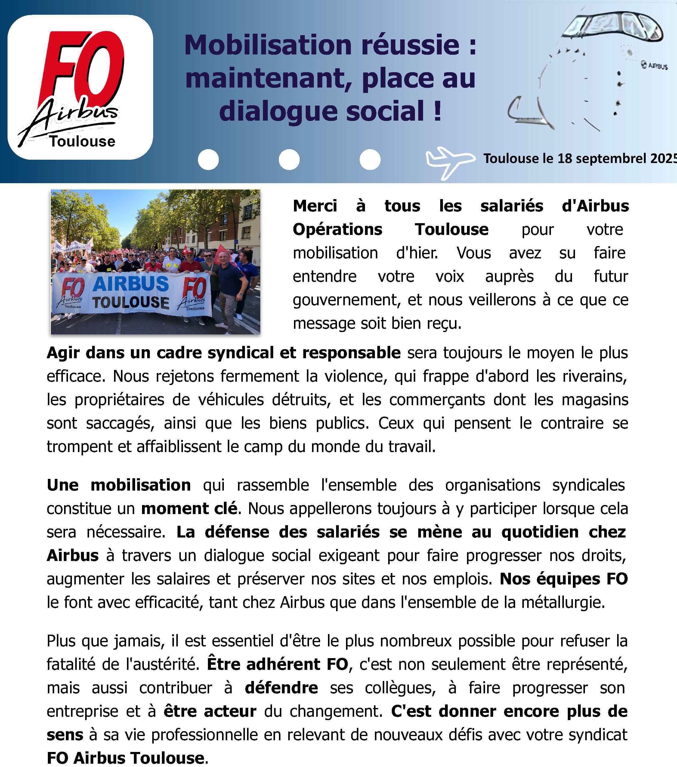 Mobilisation réussie : maintenant, place au dialogue social !