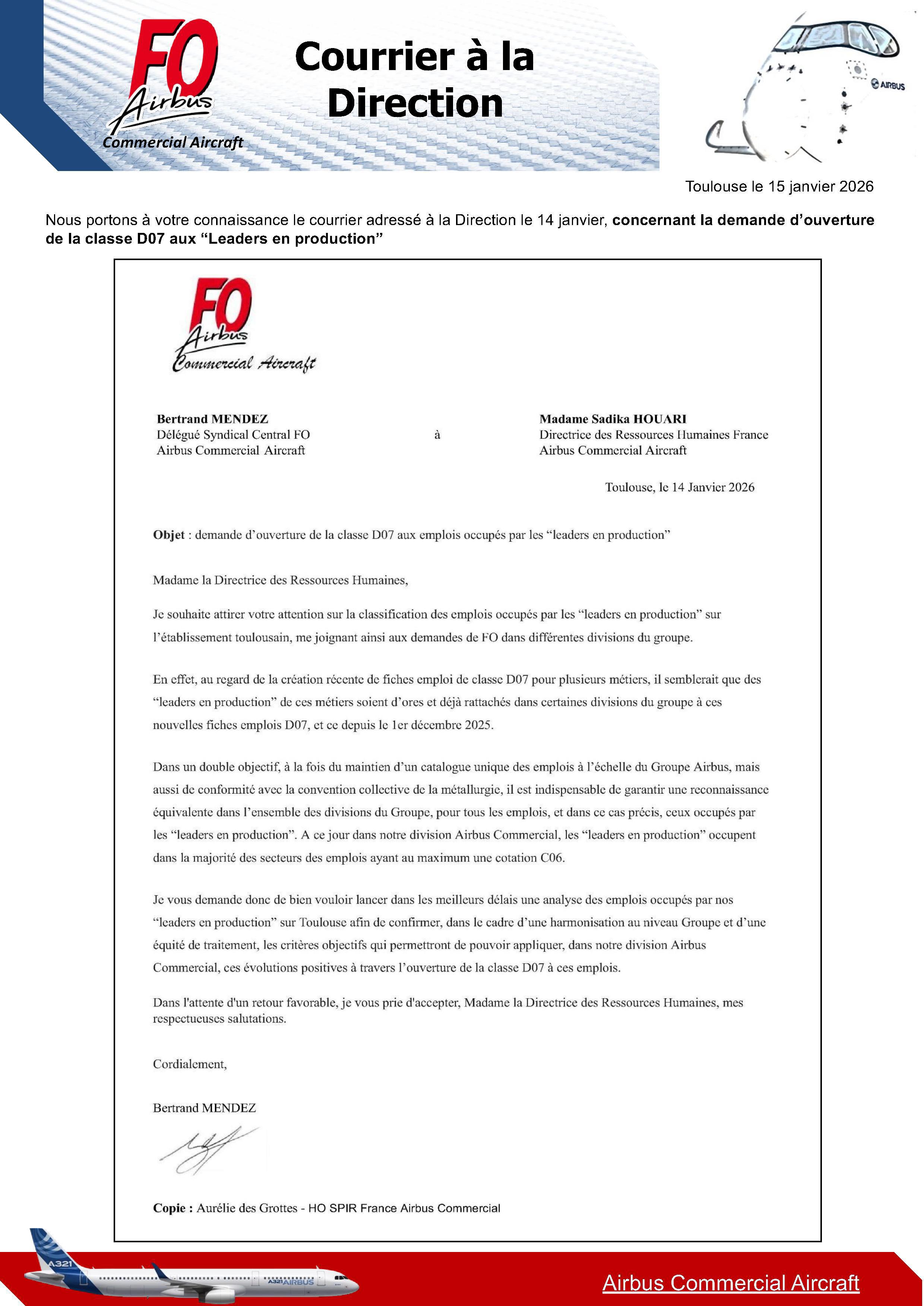 Courrier à la Direction concernant la demande d’ouverture de la classe D07 aux “Leaders en production” (1)