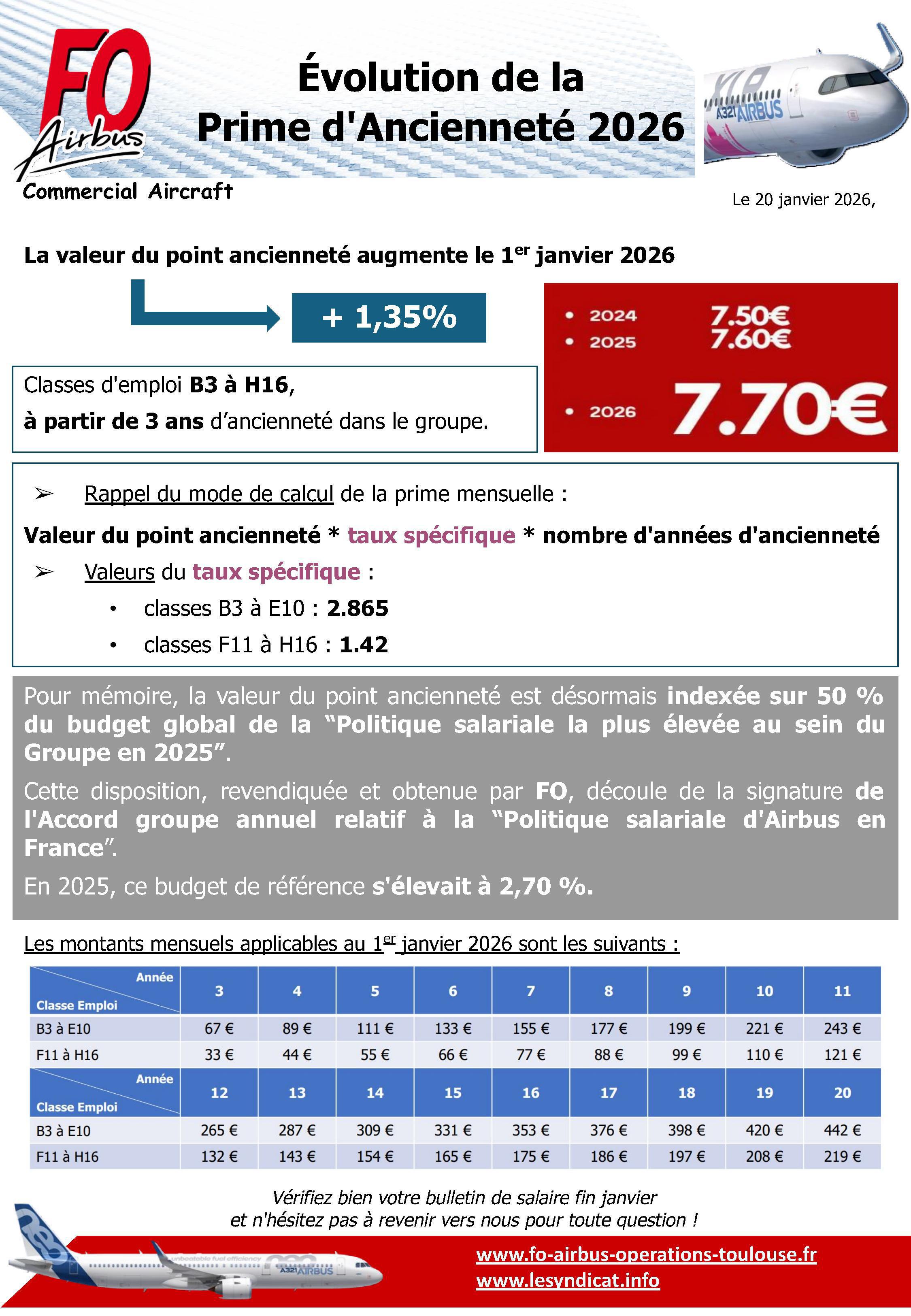 Evolution de la prime d'ancienneté 2026