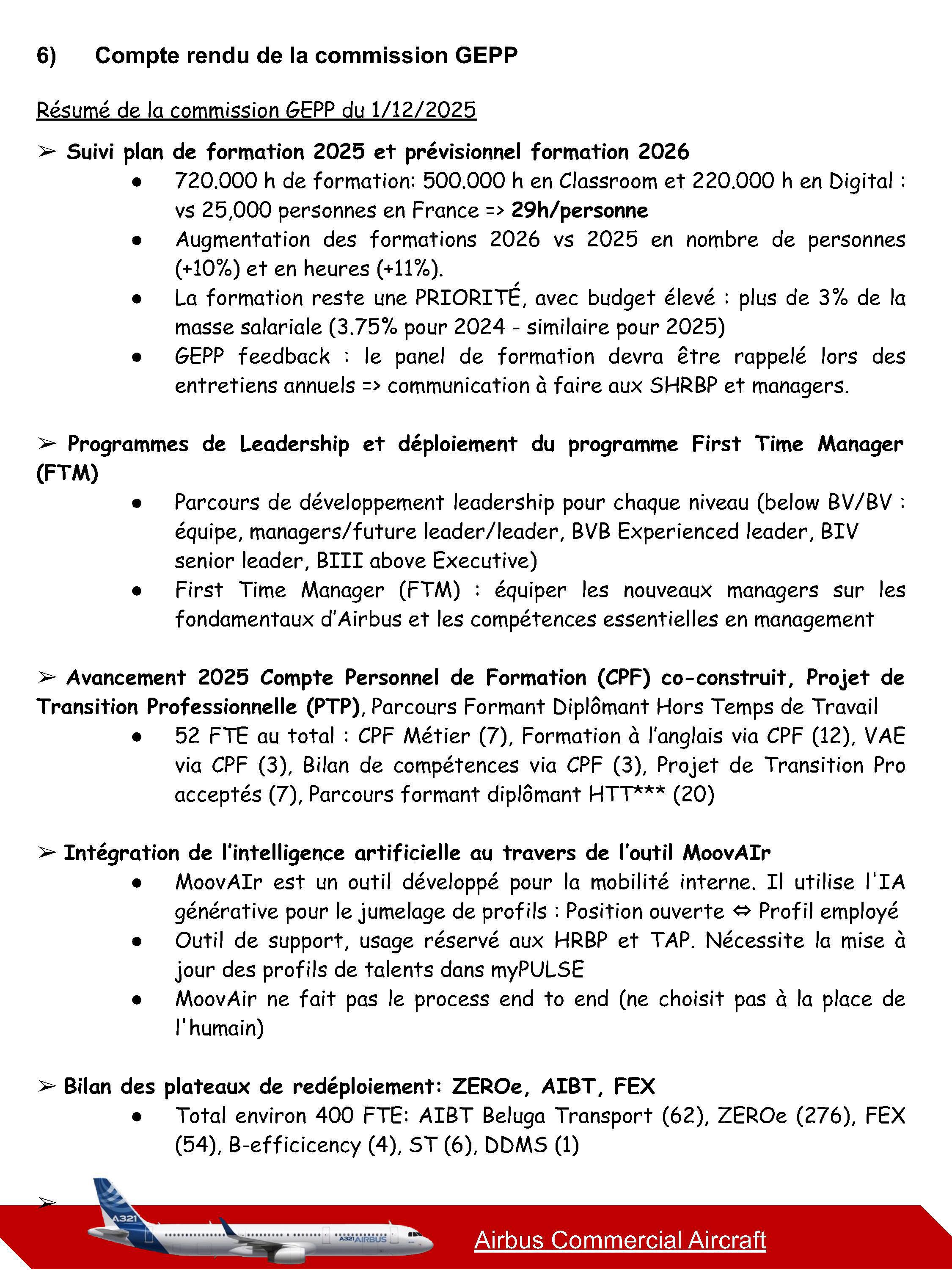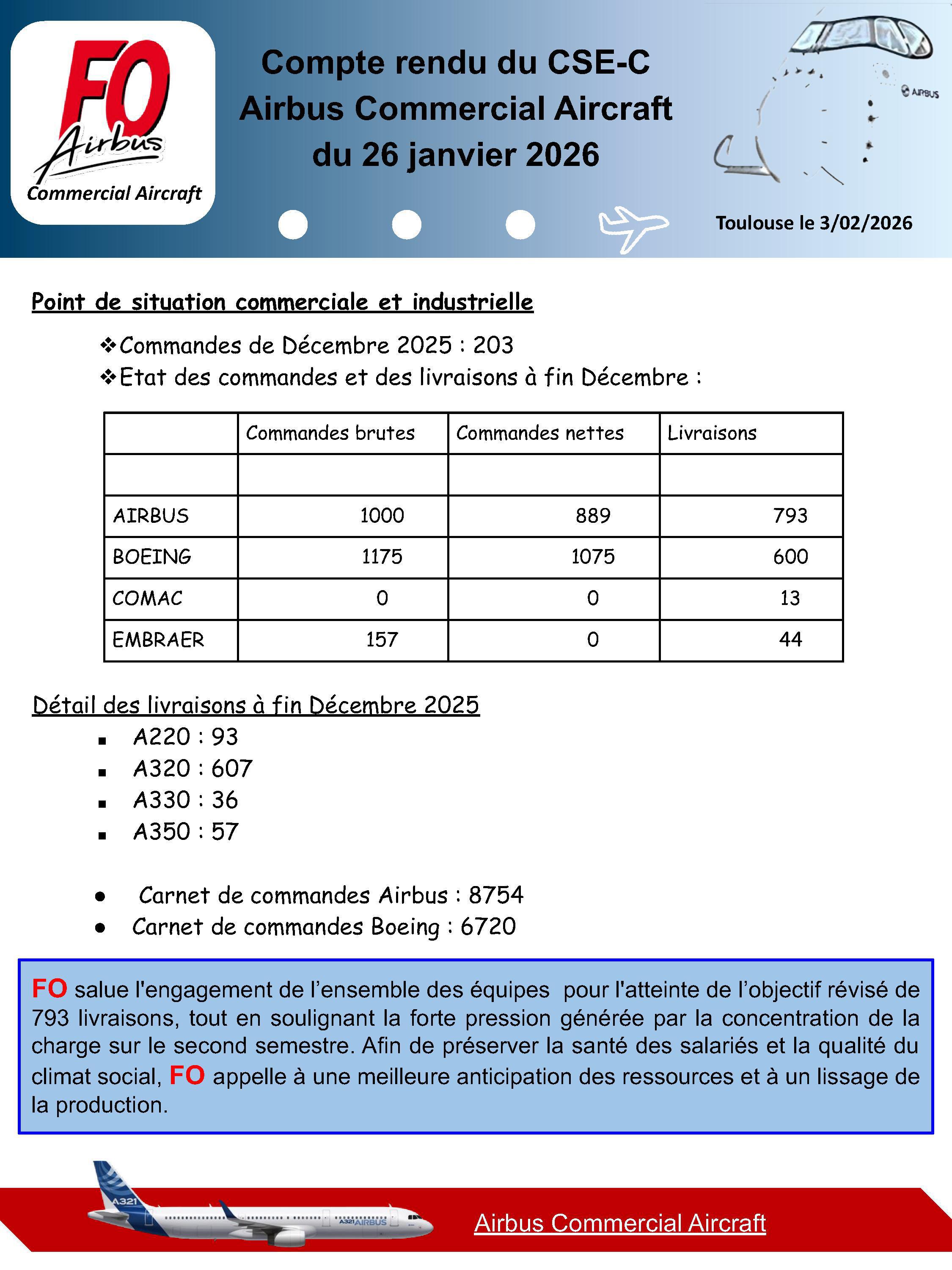 Compte rendu du CSE-C Airbus Commercial Aircraft du 26 janvier 2026